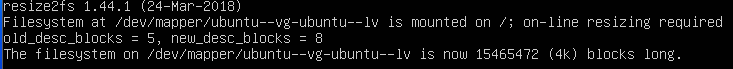 # sudo resize2fs /dev/mapper/ubuntu--vg-ubuntu--lv