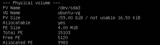 /는 lv로 인해 /dev/mapper/ubuntu--vg-ubuntu--lv (/dev/sda3)에 있음