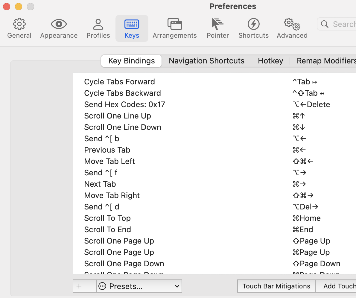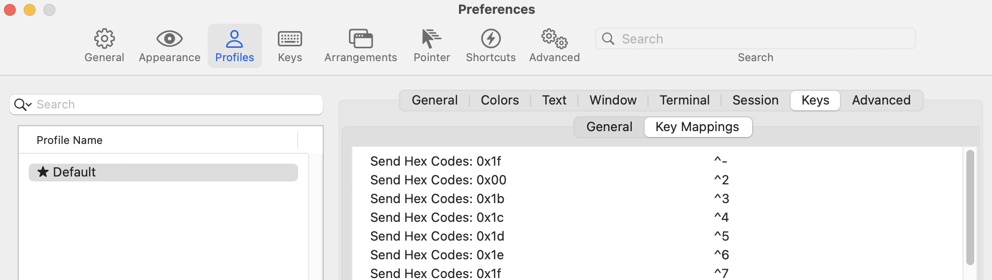 4. 혹시 동작이 안된다면 Profiles -> Keys -> Key Mappings 에서 겹치는 것이 있는지 확인해보고 지워주자