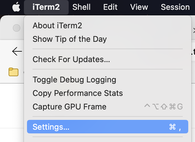 메뉴의 iTerm2 -> Settings...로 들어가거나